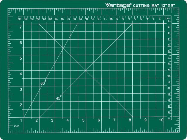 Dahle Vantage® Premium Self-Healing Cutting Mats are extremely durable and provide 1/8" of work surface protection. This 9" x 12" premium cutting mat features 5 layers of PVC construction with screened inch, metric, and angled alignment guides. Vantage® Mats can be used on both sides and are ideal for sewing, crafting, rotary cutting, and cropping photos. SELF-HEALING DURABILITY