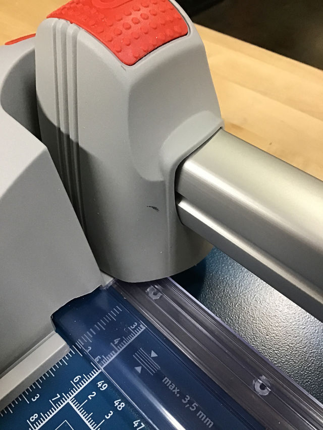 This trimmer features a self-sharpening cutting system. No need to worry about replacing dull or worn blades, this system sharpens as you cut to maintain a perfectly honed edge. The blade's precision graduated edge will remove even the tiniest sliver of paper and produce a clean, burr-free cut.